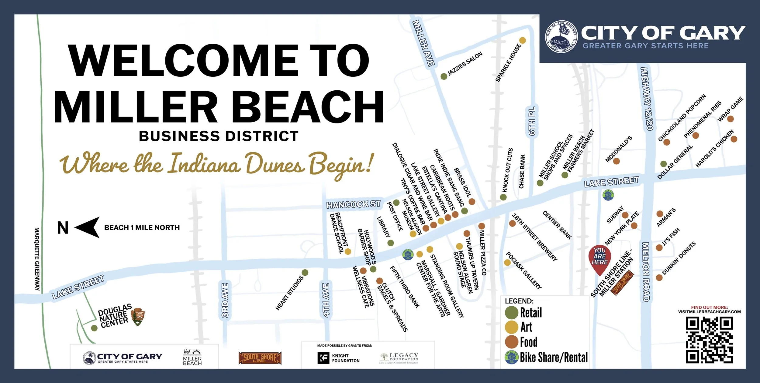 Download our downtown Miller Beach map to see local shops, restaurants, art galleries, and more.
